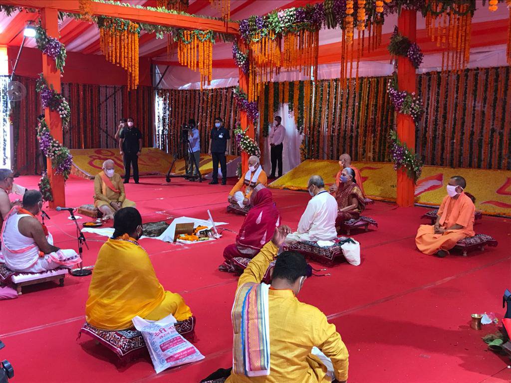 यजमान की तरह प्रधानमंत्री नरेंद्र मोदी ने वह सारी प्रक्रियाएं पूरी की, जो इस पूजन के लिए निर्धारित थीं। इस मौके पर राज्यपाल आनंदीबेन पटेल, मुख्यमंत्री योगी आदित्यनाथ, राष्ट्रीय स्वयं सेवक प्रमुख मोहन भागवत, मुख्य यजमान श्री राम जन्मभूमि आंदोलन के पुरोध स्व. अशोक सिंहल के भतीजे सलिल सिंघल भी मौजूद थे।
