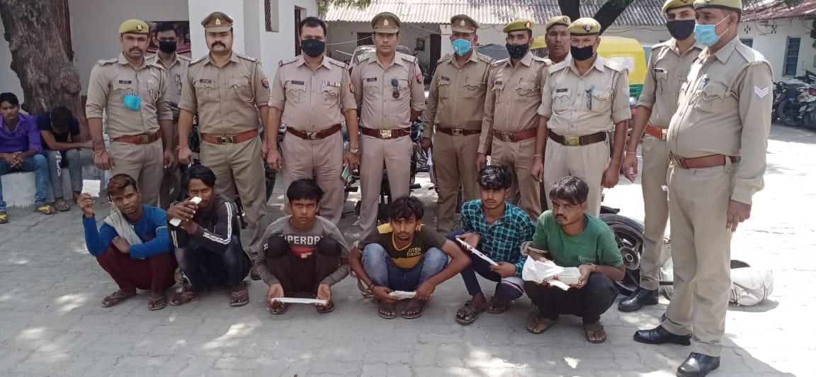 06 व्यक्तियों का ऐसे सुनसान स्थान पर एकत्रित होना पुलिस टीम को संदिग्ध प्रतीत होने पर पुलिस टीम द्वारा घेराबन्दी करके सभी 06 व्यक्तियों को पकड लिया गया तथा मौके पर उपस्थित 05 मोटर साइकिल तथा मोटर साइकिलों के पूर्जो के सम्बन्ध में जानकारी करने पर ज्ञात हुआ कि उक्त सभी मोटर साइकिल चोरी की है जो उक्त सभी 06 अभियुक्तों द्वारा विभिन्न स्थानों से चोरी की गयी थी तथा उक्त पूर्जे अन्य मोटर साइकिलों के जिन्हे चोरी किया गया था तथा अब उनके पूर्जों को बैचने के लिये खोला जा रहा है तथा गिरफ्तार अभियुक्तों के कब्जे से अवैध शस्त्र भी बरामद हुए।