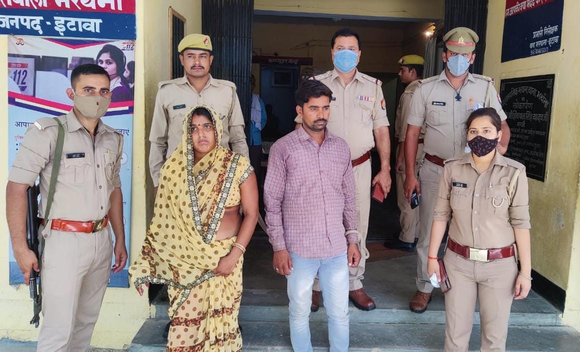 भरथना पुलिस क्षेत्राधिकारी विजय सिंह ने बताया कि विगत 13 जून को भरथना में एक सर्राफ की दुकान से नकली सौने की चूड़ियां दिखाकर कीगई असली सौने के आभूषणों के मामले में श्रीराम ज्वेलर्स संचालक द्वारा दर्ज कराई गई रिपोर्ट पर कार्यवाही करते हुए भरथना प्रभारी निरीक्षक बचन सिंह सिरोही के नेतत्व में भरथना पुलिस ने टप्पेबाज ठग दम्पति सनोज यादव पुत्र स्व०मेहताब सिंह यादव, व उसकी ठग पत्नी आरती पत्नी सनोज यादव निबासी ग्राम धरमाई सौरिख जनपद कन्नौज को भरथना के बालूगंज स्तिथ ऊसराहार बस स्टैंड से रंगेहाथों मय नकली चार चूड़ियों, एक हार व कानो के झाले समेत गिरफ्तार किया है।
