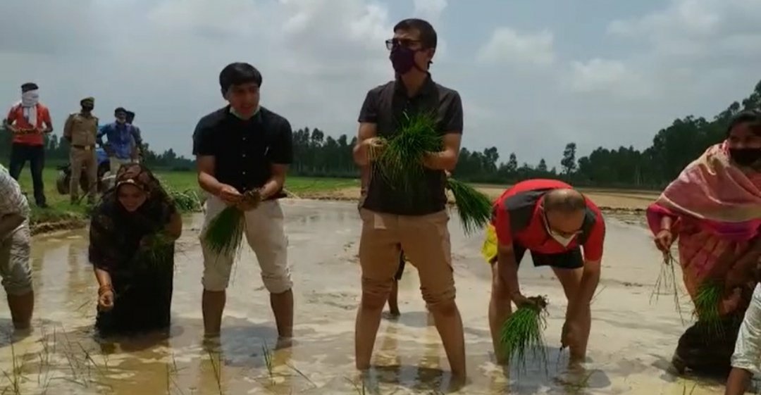 बाराबंकी। तहसील फतेहपुर के ग्राम टांड़पुर में राष्ट्रीय ग्रामीण आजीविका मिशन फतेहपुर मे महिला स्वयं सहायता समूहों द्वारा किये जा रहे कार्यो का अवलोकन करते हुए समूहों द्वारा की जा रही धान की रोपाई में साकेन्द्र वर्मा विधायक कुर्सी, जिलाधिकारी, मुख्य विकास अधिकारी, उपजिलाधिकारी फतेहपुर व अन्य अधिकारियों के साथ सहभागिता कर समूहों को जानकारी निर्देश दिये गए।