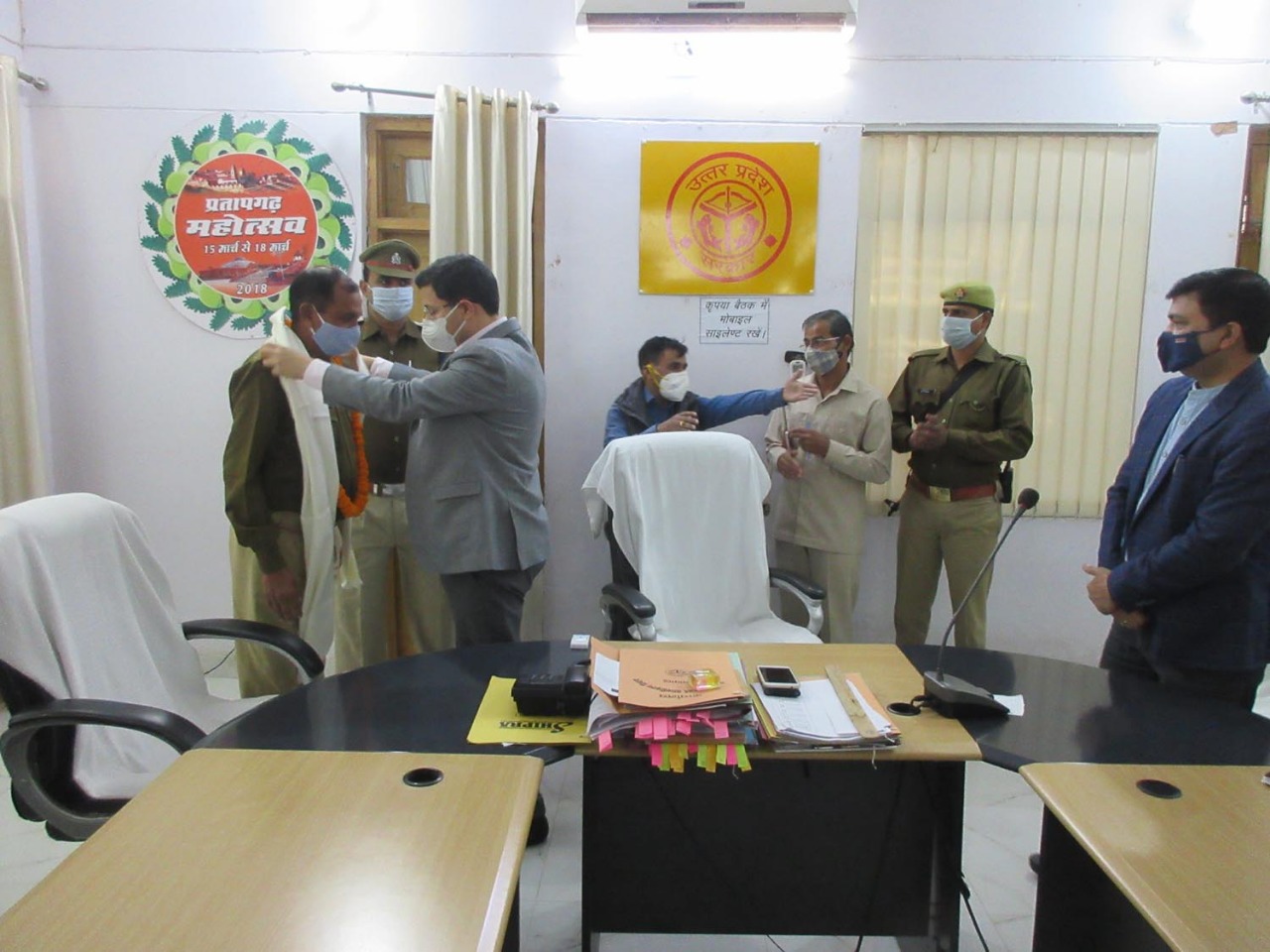 आपको बता दें कि जिलाधिकारी प्रतापगढ़ केआवास पर 25 वर्ष से तैनात होमगार्ड शिवराम मिश्रा का कैम्प कार्यालय के सभागार में जिलाधिकारी डा0 रूपेश कुमार, अपर जिलाधिकारी (वि0/रा0) शत्रोहन वैश्य एवं सहित कैम्प कार्यालय के समस्त स्टाफ द्वारा भावभीनी विदाई दी गयी।