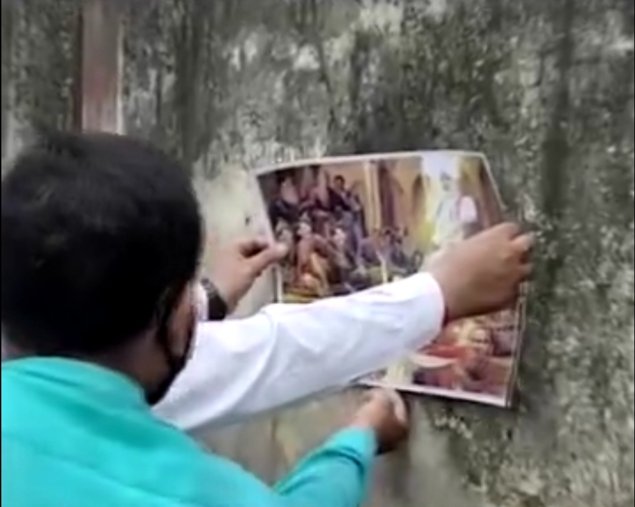 बॉलीवुड अदाकारा कंगना और शिवसेना में तनातनी के बीच काशी के वकील श्रीपति मिश्रा ने नया विवाद खड़ा कर दिया है। अधिवक्ता ने संपूर्णानंद इलाके में दीवार पर पोस्टर चस्पा किया है।पोस्टर में कंगना को द्रोपदी और महाराष्ट्र के मुख्यमंत्री उद्धव ठाकरे को दुशासन के रूप में दर्शाया गया है। प्रधानमंत्री नरेंद्र मोदी को भगवान कृष्ण के रूप में दर्शाया गया है। पोस्टर में उद्भव कंगना का चीरहरण कर रहे हैं, तो पीएम मोदी उनकी रक्षा कर रहे हैं। दरबार में संजय राउत को भी बैठा दर्शाया गया है। हालांकि, बाद में यह पोस्टर हटा दिया गया।