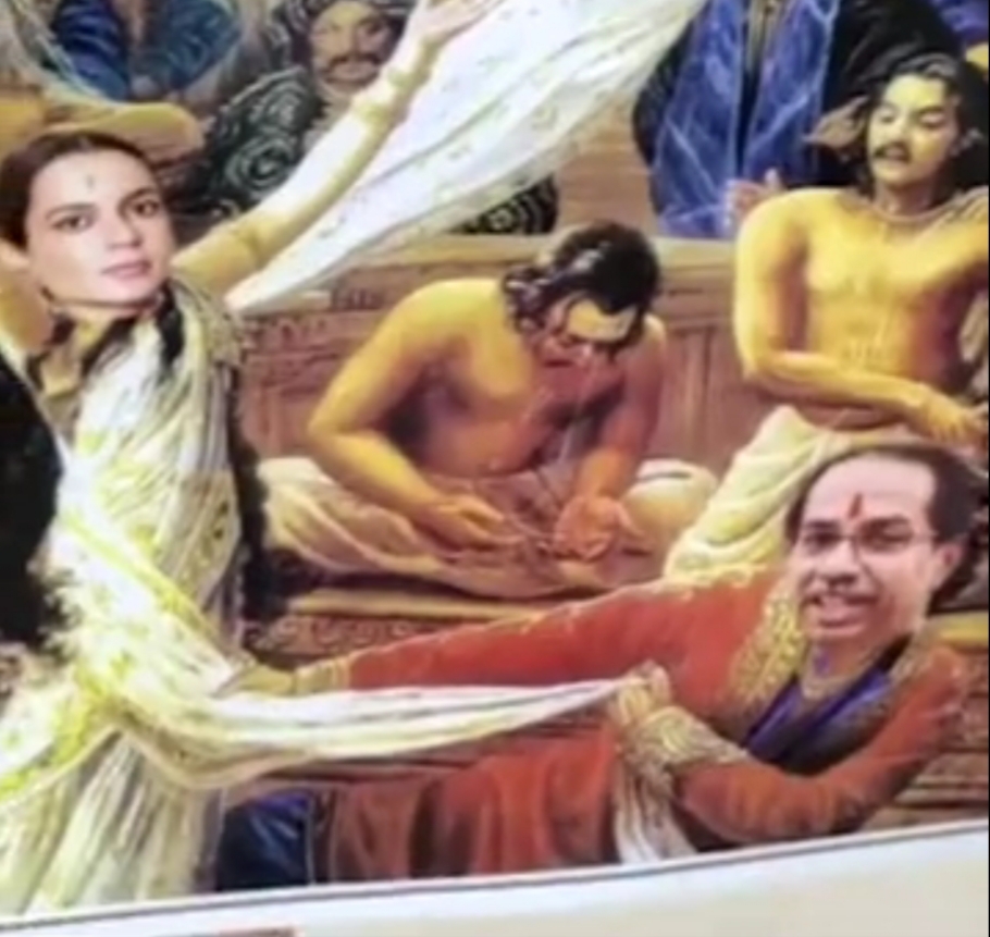 दरअसल वकील श्रीपति मिश्रा भाजपा से जुड़े हुए है जिनके द्वारा लगाए गए विवादित पोस्टर में उद्धव ठाकरे की दुशासन से तुलना, कंगना रनोट को द्रौपदी तो पीएम मोदी को भगवान श्रीकृष्ण बताया। मीडिया से बात करने पर वकील द्वारा बताया गया कंगना ने अपने आप को जोखिम में डालकर हर महिला की आवाज बुलंद की है। शिवसेना की सरकार ने कंगना के दफ्तर को तोड़ दिया। ऐसी कार्यवाही किसी महिला के विरुद्ध द्वेषपूर्ण हैं। हम सभी का कंगना के साथ हैं।