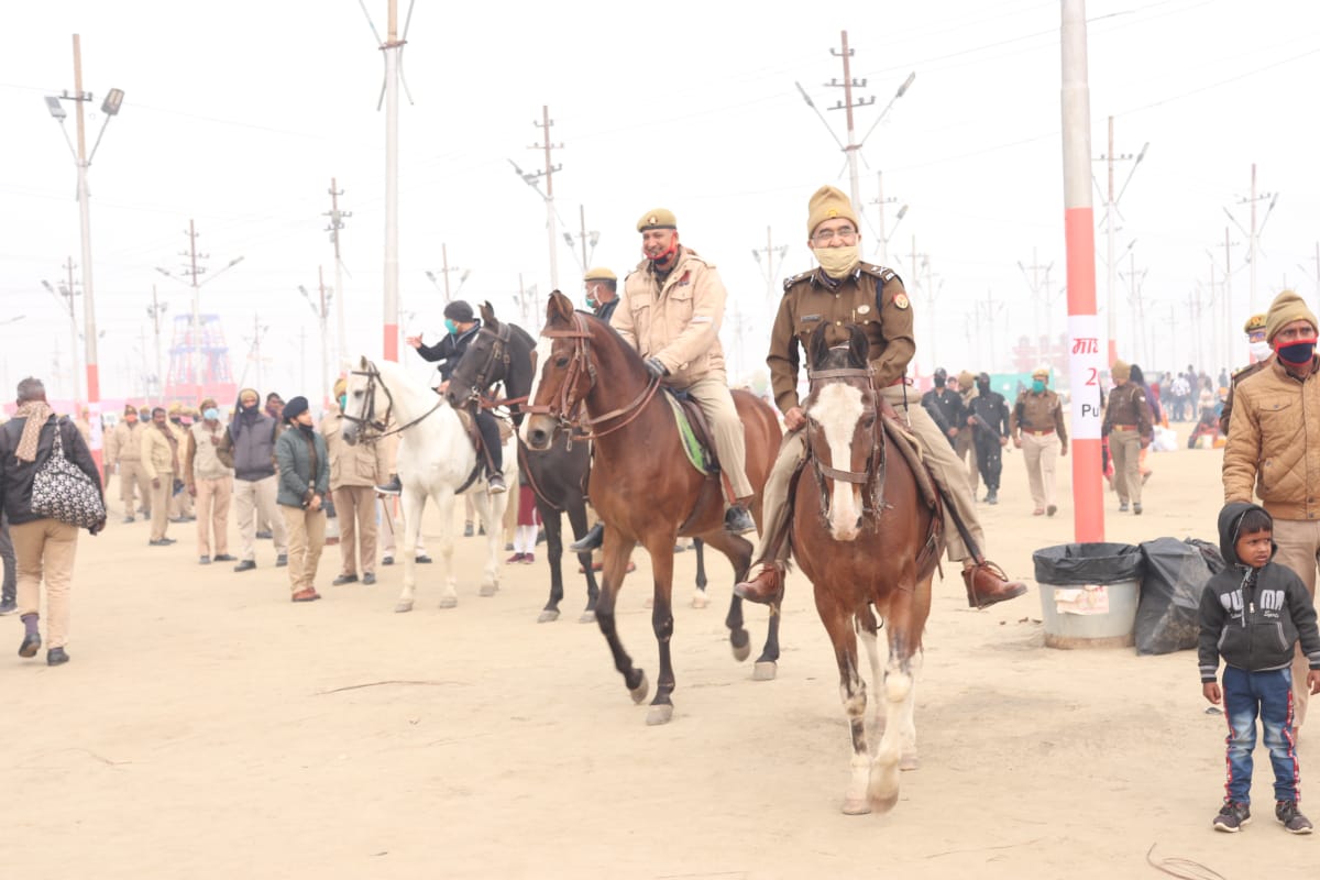 प्रयागराज: माघ मेला 2021 मकर संक्रांति का प्रमुख स्नान आज मकरसंक्रांति के पर्व पर सुरक्षा में कोई चूक न हो इसको लेकर पुलिस महानिरीक्षक प्रयागराज परिक्षेत्र कवीन्द्र प्रताप सिंह स्वयं संगम नोज एवम संगम के अन्य घाट पर फूट पेट्रोलिंग/घुड़सवारी के माध्यम से सुरक्षा व्यवस्था का जायज़ा लिया गया साथ ही संगम में आने वाले श्रद्धालुओं को लाउड हेलर के माध्यम से कोविड 19 के नियमो का पालन करने हेतु अपील किया गया।