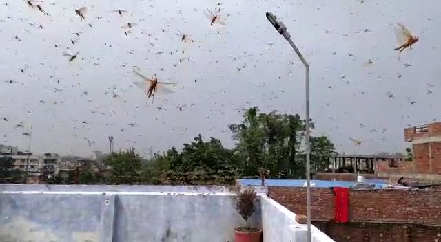कुछ ही समय मे पूरे शहर में आसमान पर सिर्फ अनगिनत टिड्डियां ही टिड्डियां दिखाई देने लगी। आपको बता दें कि पिछले काफी दिनों से पूरे देश में इन टिड्डियों का आतंक कायम है और बताया गया है कि ये टिड्डियां सरहद पार से आई है जो किसानों की फसलों और हरे पेड़ो को बर्बाद कर रहे है।