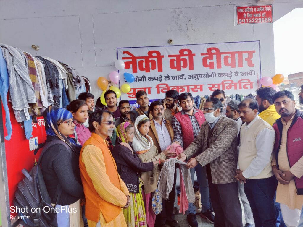 रविवार को फतेहपुर में युवा विकास समिति द्वारा जरूरतमंद लोगों के लिए ‘नेकी की दीवार’ की शुरूआत की गई। उक्त अभियान के उद्घाटनकर्ता एआरएम रोडवेज परिवहन श्री मक्खन लाल केशरवानी जी व प्रदेश अध्यक्ष ज्ञानेंद्र कुमार मिश्रा , संगठन प्रमुख संजय दत्त जी द्वारा किया गया । गरीबों के लिए वरदान साबित होगी नेकी की दीवार इसकी शुरूआत करते हुए के जिलाध्यक्ष कंचन मिश्रा जी ने लोगों से अपील करते हुए कहा कि अगर आपके घर में पुराने पहनने, ओढ़ने, बिछाने के साफ कपड़े, किताबें, खिलौना,बर्तन,क्रॉकरी, फर्नीचर आदि जो भी है,जिसका आप प्रयोग नहीं कर रहे हैं और वह नगर के जरूरतमंदों के काम आ जाए। तो आप उक्त सामान को ‘नेकी की दीवार’ को दे दीजिए।यहां से जरूरतमंद आकर खुद इन्हें ले जाएंगे।कपड़े टांगने के लिए यहां खूंटियां लगाई गई हैं।