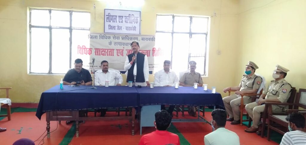 बाराबंकी: उ0प्र0 राज्य विधिक सेवा प्राधिकरण के मंशानुरूप माननीय जनपद न्यायाधीश राधेश्याम यादव के निर्देशन व अध्यक्षता में जिला विधिक सेवा प्राधिकरण बाराबंकी द्वारा जिला कारागार बाराबंकी में बंदियों की रिहाई विषय एवं उनके विधिक अधिकार विषय पर विधिक साक्षरता एवं जागरूकता का आयोजन किया गया। इस अवसर पर न्यायिक अधिकारियों के अतिरिक्त जेल अधीक्षक जिला कारागार, जेलर डिप्टी जेलर इत्यादि उपस्थित रहे।