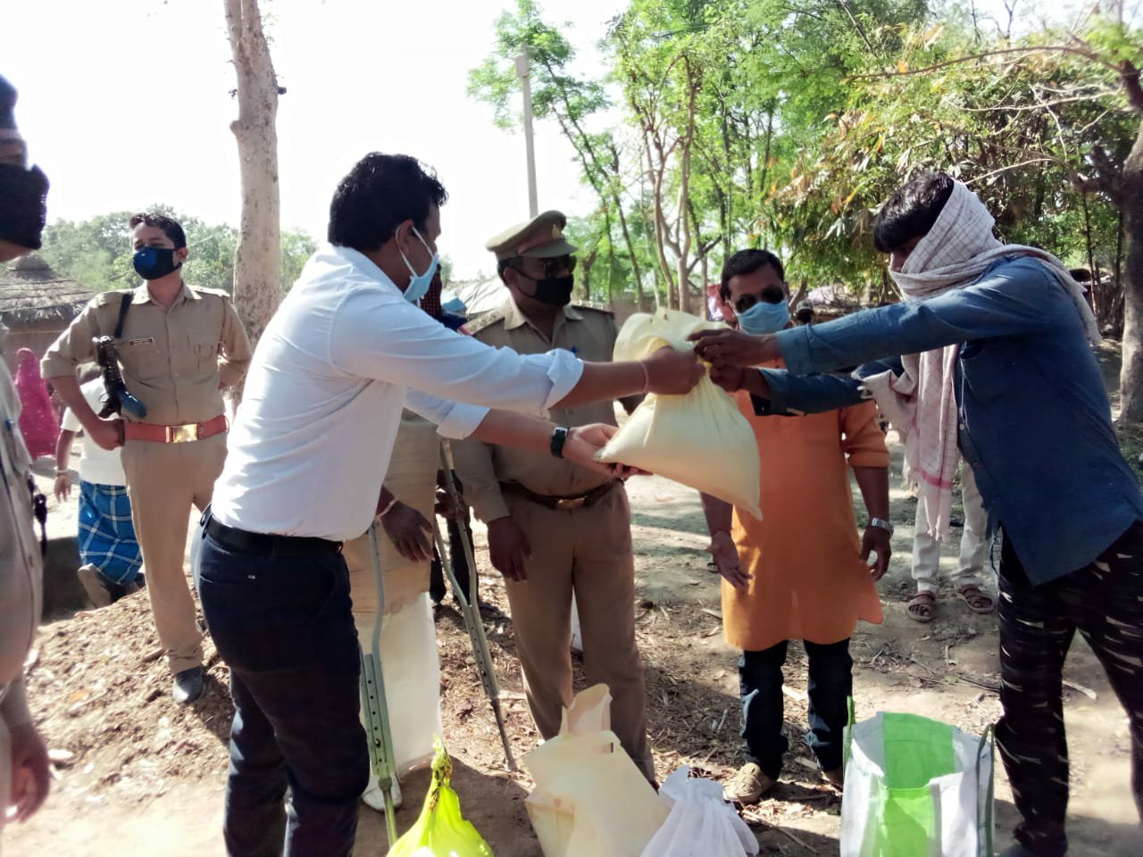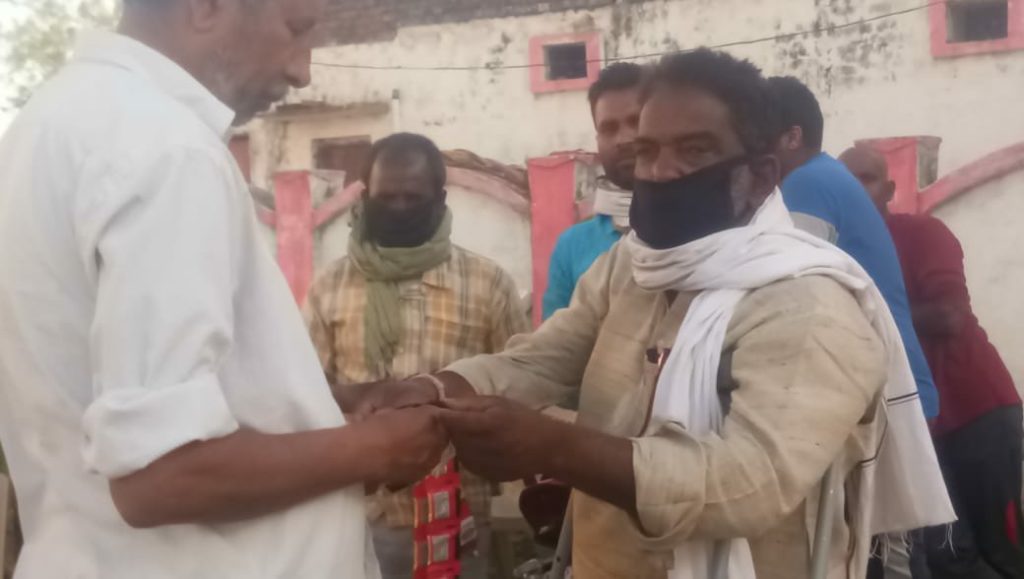 साथ ही गांव के आशक्त वह गरीब ग्रामीणों को अपने खर्चे से राहत सामग्री के अंतर्गत आटा चावल दाल आलू नमक दियासलाई मोमबत्ती चिऊरा व गुड के साथ ही अन्य खाद्य सामग्रियों का वितरण किया। खाद्य सामग्री का वितरण एसडीएम बांसडीह की मौजूदगी में ग्रामीणों के बीच हुआ।