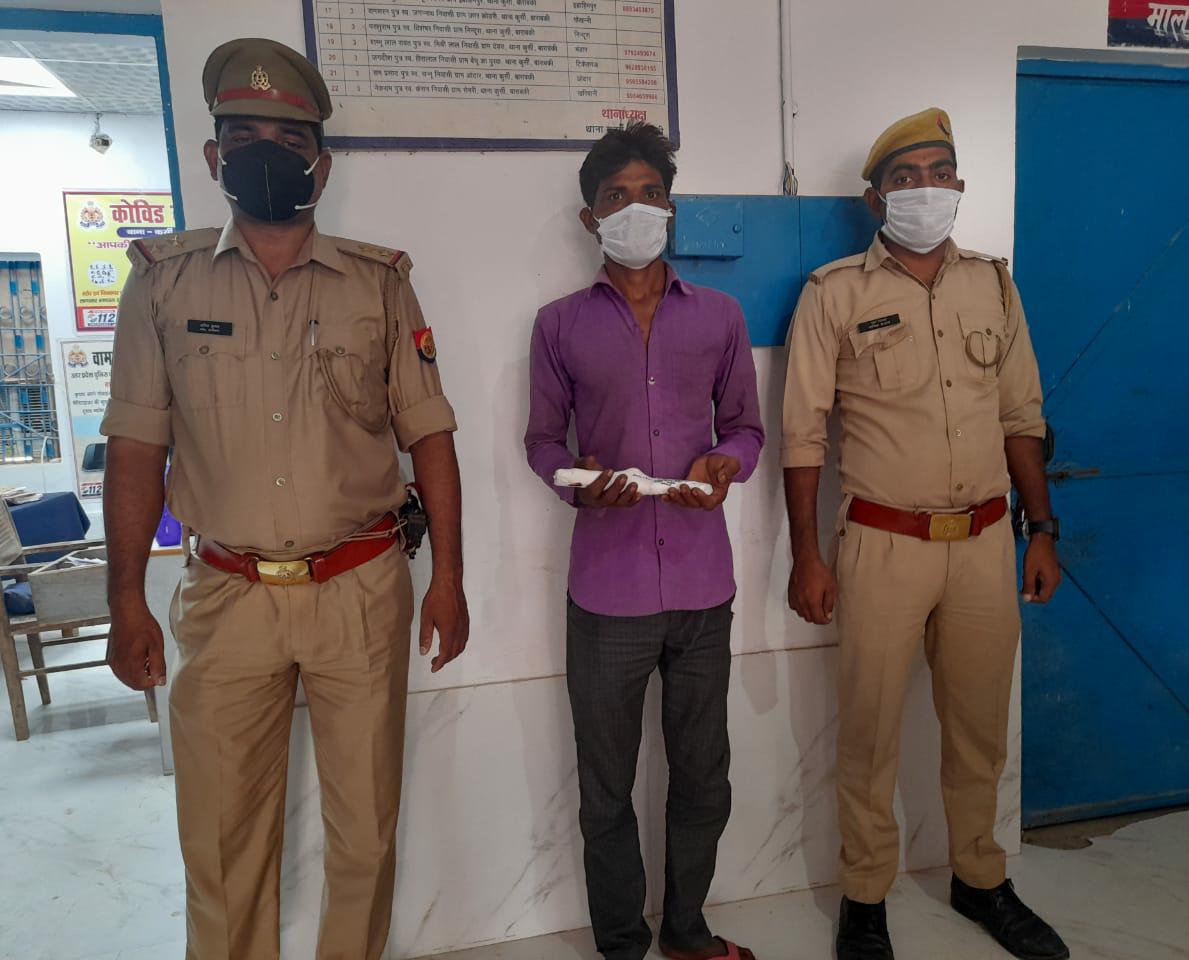 आज प्रभारी निरीक्षक कुर्सी शशिकान्त यादव के नेतृत्व में गठित पुलिस टीम द्वारा मुखबिर की सूचना पर अभियुक्त रामजीत रावत पुत्र स्व0 राम खेलावन निवासी ग्राम चकिया थाना कुर्सी जनपद बाराबंकी को पावर ग्रिड अगासण्ड से गिरफ्तार किया गया। अभियुक्त के कब्जे से 01 अदद तमंचा मय 01अदद जिन्दा कारतूस 12 बोर बरामद किया गया। अभियुक्त के विरुद्ध थाना सफदरगंज पर मु0अ0सं0 361/2020 धारा 3/25 शस्त्र अधिनियम पंजीकृत किया गया।