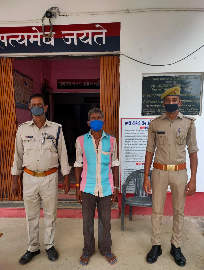 प्रभारी निरीक्षक दरियाबाद सुमित कुमार श्रीवास्तव के नेतृत्व में गठित पुलिस टीम द्वारा मुखबिर की सूचना पर अभियुक्त हीरालाल पुत्र मोतीलाल निवासी डिहा मजरे वीर किठाई थाना दरियाबाद जनपद बाराबंकी को बभनाभारी चौराहा से गिरफ्तार किया गया।
