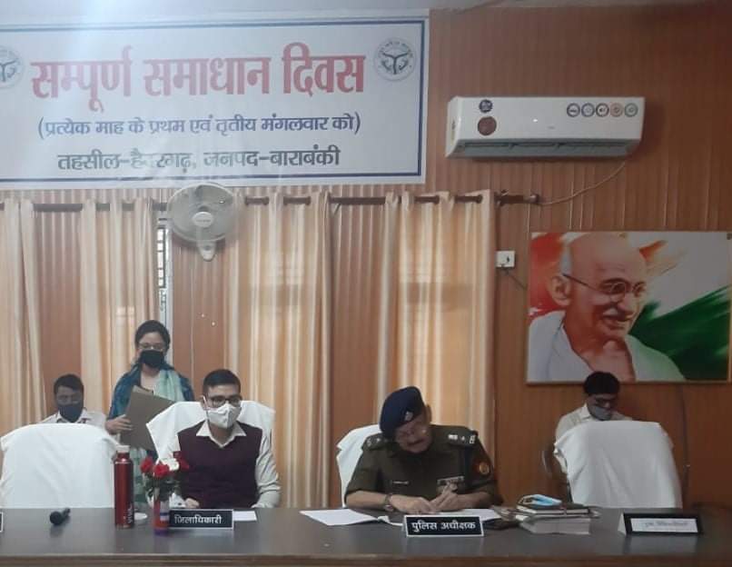 बाराबंकी। शासन की मंशानुरूप माह के प्रत्येक प्रथम एवं तृतीय मंगलवार को सम्पूर्ण समाधान दिवस का आयोजन किया जाता है जिसमे जिलाधिकारी द्वारा जनपद की एक तहसील में रोस्टर के अनुसार अध्यक्षता की जाती है जिसमे जनपद स्तरीय अधिकारी मौजूद रहते है।