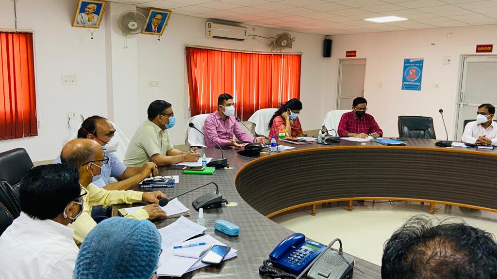 जिलाधिकारी डाॅ0 आदर्श सिंह ने कलेक्ट्रेट स्थित लोकसभागार में अधिकारियों के साथ बैठक करते हुए जनपद में कोरोना संक्रमण की रोकथाम एवं बचाव हेतु किये जा रहे कार्यो/प्रयासों के संबंध में विस्तृत रूप से समीक्षा करते हुए आवश्यक दिशा निर्देश दिए। साथ ही जनपद में कोविड अस्पतालों में ऑक्सीजन आपूर्ति, बैड, चिकित्सकों आदि समुचित स्वास्थ्य व्यवस्थाओं को सुनिश्चित कराये जाने के भी निर्देश दिये गए।