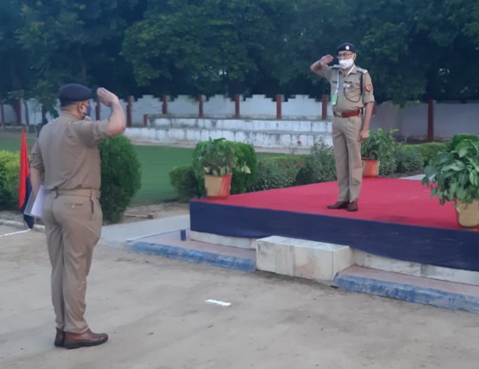 बाराबंकी। पुलिस अधीक्षक बाराबंकी डॉ0 अरविन्द चतुर्वेदी द्वारा रिजर्व पुलिस लाइन्स में आयोजित परेड में प्रतिभाग कर सलामी ग्रहण की गयी।