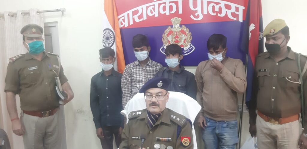 बाराबंकी: थाना बड्डूपुर पुलिस द्वारा ग्राम लिलौली निवासी रघुराज के 06 वर्षीय अपहृत पुत्र की सकुशल बरामदगी की गयी तथा साजिश व अपहरण करने वाले 04 अभियुक्तों की गिरफ्तारी करते हुए उनके कब्जे से 01 अदद मोटर साइकिल, 04 अदद मोबाइल फोन व 02 अदद तमंचा 12 बोर मय 04 अदद जिन्दा कारतूस बरामद करने में उल्लेखनीय सफलता प्राप्त हुई।