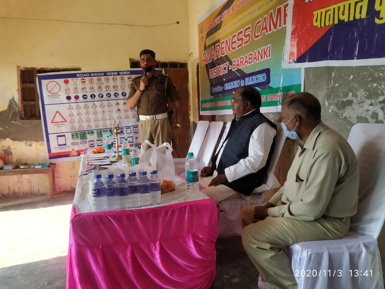 उक्त के क्रम में आज प्रभारी यातायात रितेश कुमार पाण्डेय द्वारा सर्वोदय इण्टर कॉलेज भनौली जैदपुर रोड,बाराबंकी में पूर्व विधायक राम गोपाल रावत की अध्यक्षता में अभिनव बाल ग्रामोत्थान समिति के साथ विद्यार्थियों एवं भनौली ग्रामवासियों को यातायात नियमों के प्रति जागरूक किया गया।