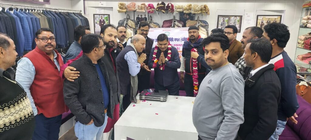 बाराबंकी: आज प्रदेश प्रभारी देवेन्द्र मिश्रा व प्रांतीय वरिष्ठ मंत्री व जिलाध्यक्ष प्रदीप कुमार जैन के नगर बाराबंकी आगमन पर नगर के प्रसिद्ध प्रतिष्ठान विवाह शोरूम पर जोरदार स्वागत किया गया।