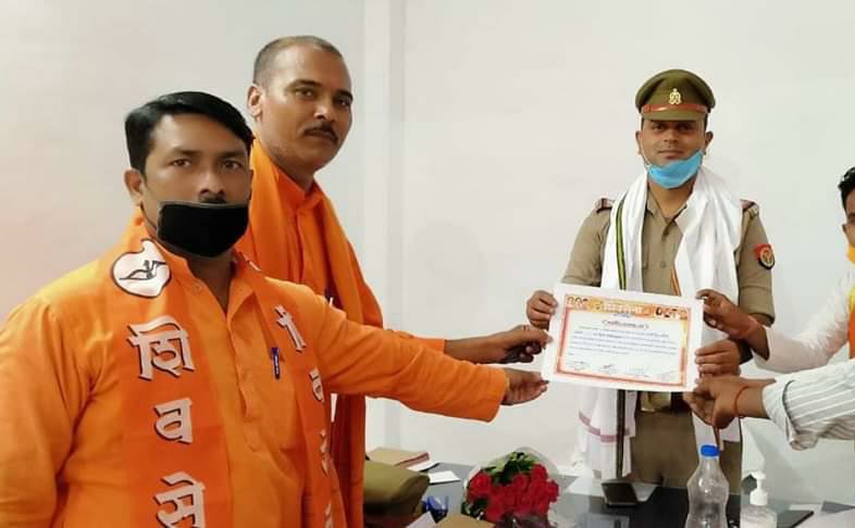 बाराबंकी। जनपद बाराबंकी में लॉकडाउन के दौरान पुलिस विभाग ने लॉकडाउन को सफल बनाने के लिए अथक प्रयास किये गए, जिसके चलते आज जनपद बाराबंकी शिवसेना प्रमुख मनोज विद्रोही एवम उनके साथियों के द्वारा यातायात प्रभारी रितेश पांडेय एवम अमित पांडेय सिटी चौकी प्रभारी को माला पहनाकर कर्मवीर सम्मान प्रदान किया।