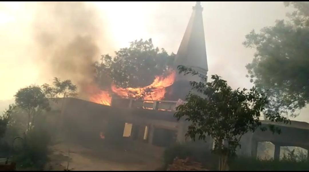 इटावा: भरथना क्षेत्र के ग्राम नगला ताल तुरैया समेत आसपास के ग्रामीणों में बीती देर शाम उस समय हाहाकार मच गया जब ग्राम नगला ताल के खाली पड़े गेँहू के खेतों की ओर से धधकती चली आ रही भीषण आग ने गांव के शिव मन्दिर को अपनी चपेट में ले लिया। जिससे मन्दिर में रखा सारा सामान जलकर राख हो गया और मन्दिर की इमारत भी बुरी तरह क्षतिग्रस्त हो गई। तेज लपटें उठती देख ग्रामीण घटनास्थल की ओर दौड पडे और निजी संसाधनों से बमुश्किल चार घण्टों की कड़ी मशक्कत कब बाद आग पर काबू पाया। और एक बड़े अग्निकाण्ड को घटित होने से बचा लिया।