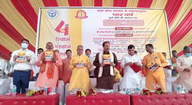 महराजगंज: उत्तर प्रदेश की योगी सरकार के चार साल पूरे होने पर मंत्री ने गिनाई उपलब्धियां।