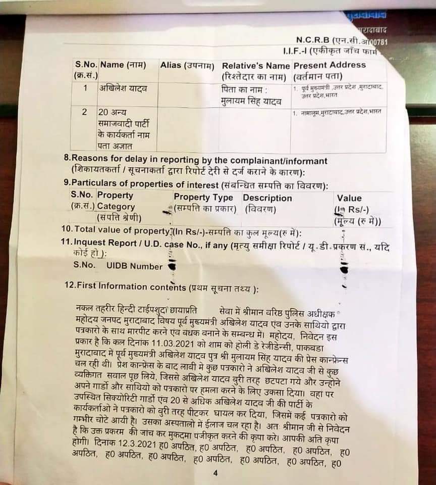मुरादाबाद: पत्रकारों की पिटाई मामले में दर्ज हुआ अखिलेश यादव सहित 20 सपा कार्यकर्ताओं पर मुकदमा
