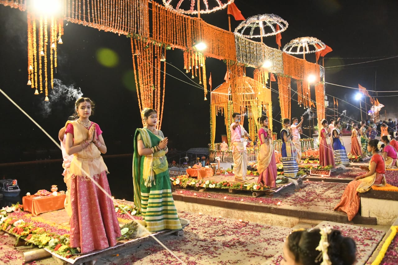 अदभुत गंगा आरती 09 ब्राह्मणों द्वारा 18 रिद्धि-सिद्धि बालिकाओं के साथ संपन्न किया गया