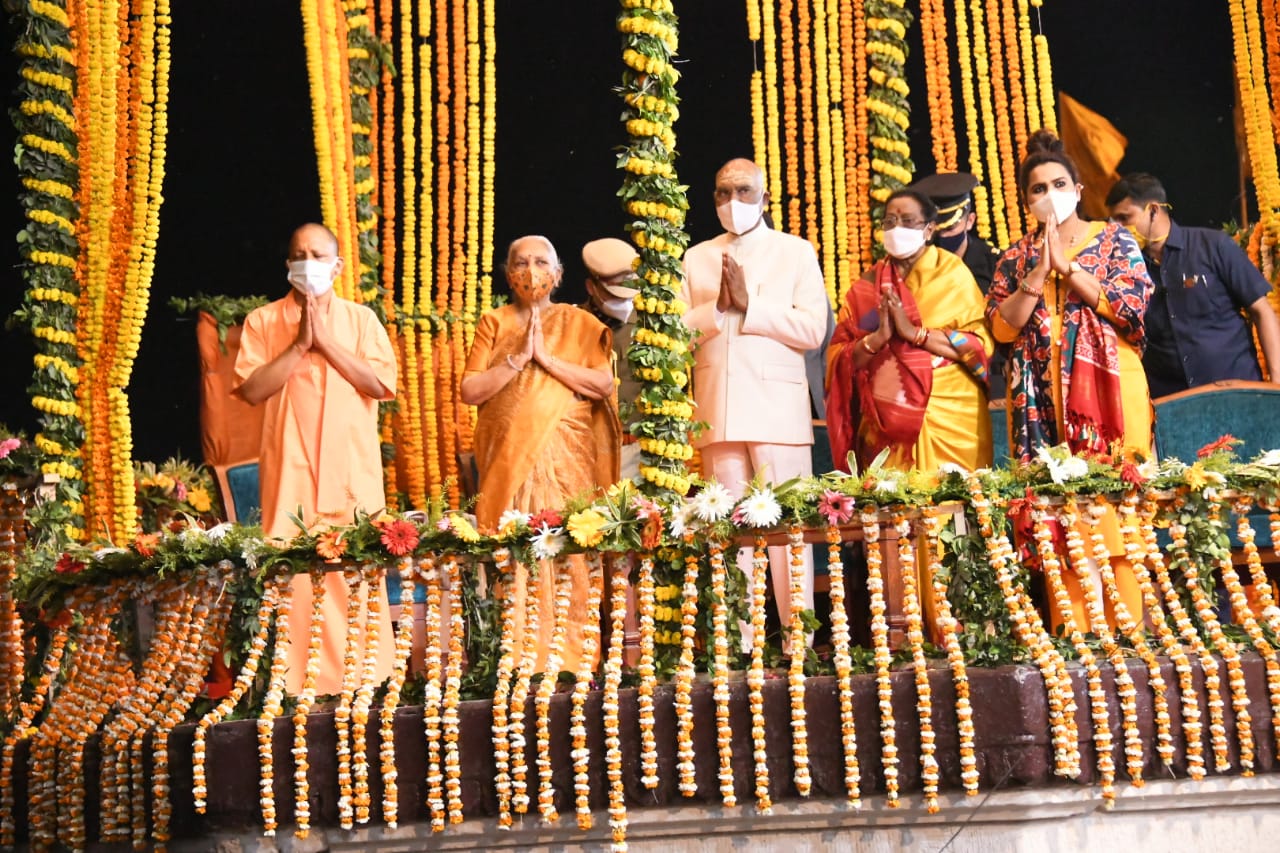 अदभुत गंगा आरती 09 ब्राह्मणों द्वारा 18 रिद्धि-सिद्धि बालिकाओं के साथ संपन्न किया गया। इस अवसर पर मुख्यमंत्री योगी आदित्यनाथ सहित अन्य लोग उपस्थित रहे। राष्ट्रपति रामनाथ कोविंद को मुख्यमंत्री ने स्मृतिचिन्ह भेंट किया।