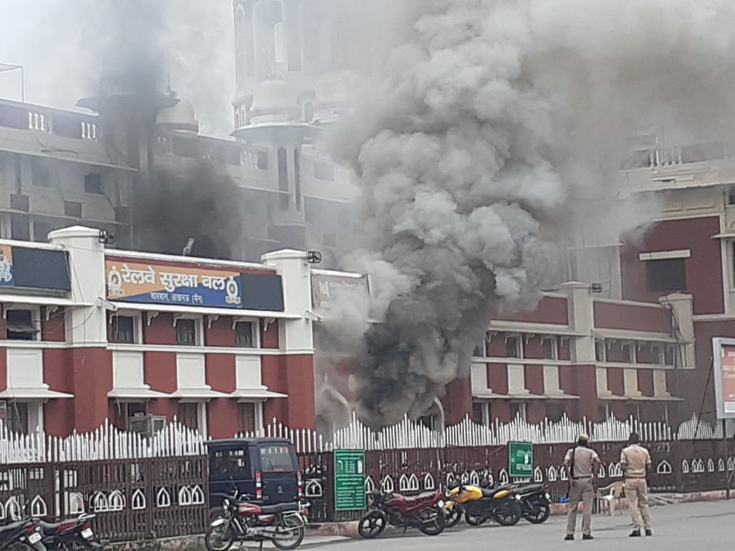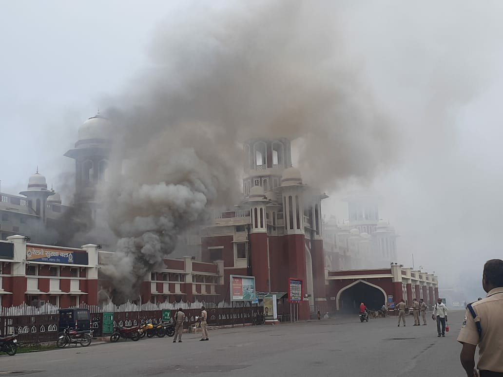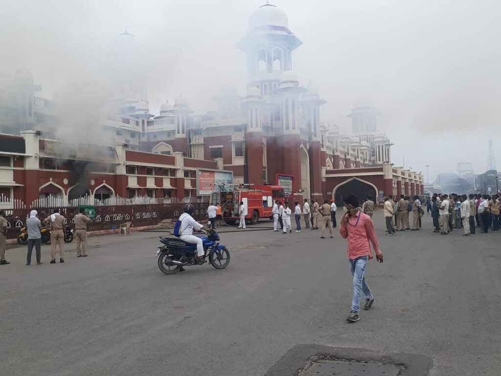लखनऊ: चारबाग रेलवे स्टेशन पर लगी आग, दो एटीएम जलकर हुए खाक।