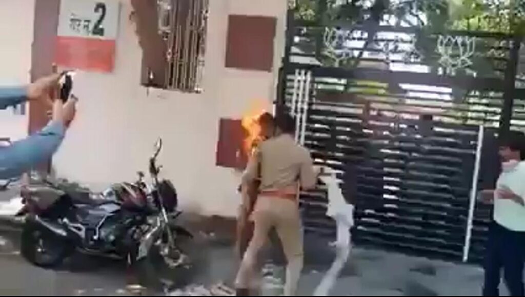 लखनऊ: भाजपा कार्यालय के गेट पर महिला ने खुद को लगायी आग! हालत गंभीर।