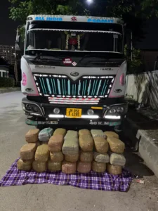 चेकिंग के दौरान एक संदिग्ध ट्रक को रोका गया और तलाशी लेने पर उसमें भारी मात्रा में गांजा छिपाकर रखा गया था। पुलिस ने मौके पर ही ट्रक को कब्जे में लेकर आरोपी को गिरफ्तार कर लिया।