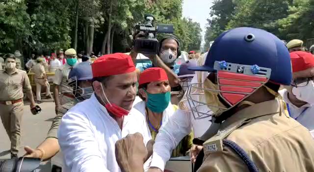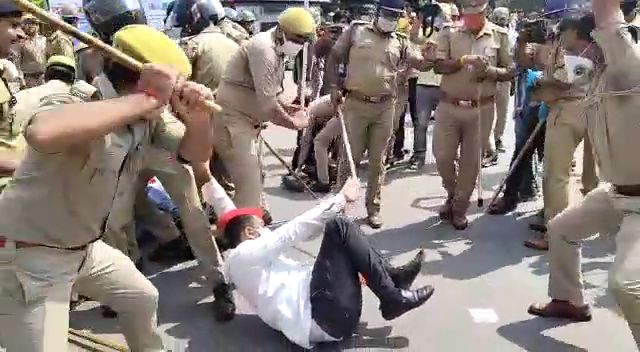 पुलिस ने कार्यकर्ताओं पर बर्बरतापूर्वक जमकर लाठीचार्ज किया जिसमें सपा प्रवक्ता अनुराग भदौरिया को भी जमकर पीटा गया।