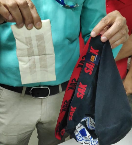 जानकारी के अनुसार एयर इंडिया के विमान संख्या IX1186 से 2 यात्री उतरे, कस्टम विभाग अपना रुटीन चेकिंग कर रहा था कि तभी एक यात्री पर शक हुआ, कस्टम के अधिकारियों ने यात्री का एक्स रे करवाया। एक्स रे में अंडरवियर के नीचे दूसरे अंडरवेयर में सोने की होने की पुष्टि हुई। एक अन्य यात्री की जांच के दौरान उसके लगेज से कस्टम ने 3.50 किलो विदेशी केसर और 8 आईफोन बरामद किया। बरामद सामान की कीमत 2.10 लाख रुपये है।