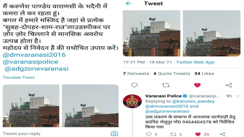 प्रयागराज में लाउडस्पीकर तेज आवाज में अजान दिए जाने पर बवाल के बाद आज वाराणसी में भी एक ताजा मामला सामने आया है बीएचयू के छात्र करुणेश पांडेय ने ट्वीटर पर पुलिस अज़ान की आवाज़ पर आपत्ति दर्ज कराते हुए नियमानुसार कार्रवाई की मांग की है।