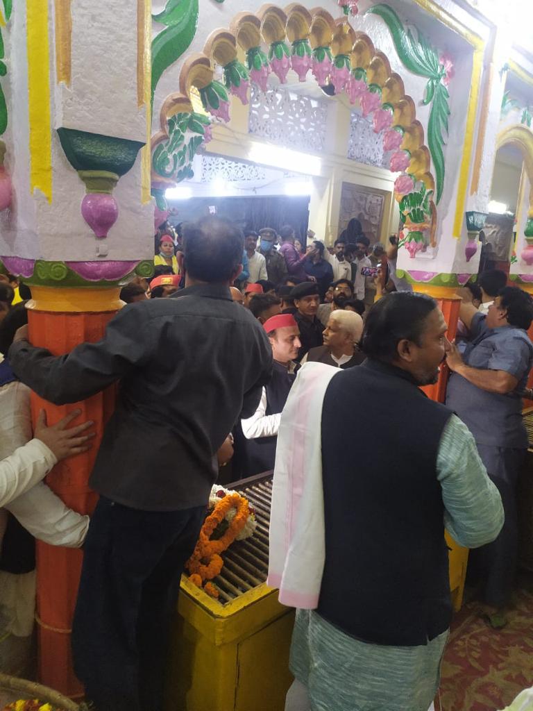 उधर अखिलेश यादव के मंदिर पहुंचने की खबर मिलते ही शाम से मन्दिर पर सपा कार्यकर्ताओं की भीड़ उमड़ने लगी थी। बजरंगबली के दरबार में अखिलेश यादव का स्वागत जय श्री राम और हर हर महादेव के जयघोष के साथ हुआ।