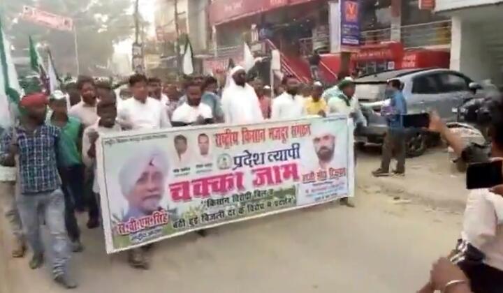 सीतापुर शहर के कुछ सटे हुए इलाके कनवाखेड़ा से निकलकर कुछ किसानों ने लालबाग चौराहे तक पैदल ही सड़क पर प्रदर्शन किया।