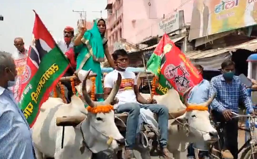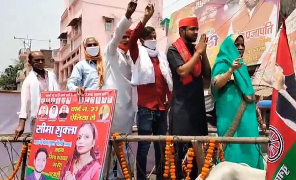 वही आज जिला पंचायत चुनाव के नामांकन के लिए सीमा शुक्ला वार्ड नंबर 27 नामांकन दाखिला कराने के लिए बैलगाड़ी के साथ पहुंची। आपको बता दें कि सीमा शुक्ला जिला पंचायत सदस्य के लिए दावेदार है और वह अपने समर्थकों के साथ बैलगाड़ी से आज लालबाग चौराहे से होते हुए सदर तहसील पहुंची है। जहां पर उन्होंने आज नामांकन दाखिला किया है।