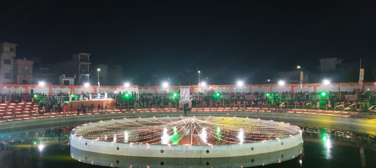 शहर के धनोखर सरोवर को दुल्हन की तरह सजाया गया 51 हजार मिट्टी के दीये जलाए गए तो इस अद्भुत नजारे को देखने के लिए भीड़ उमड़ पड़ी, सरोवर 51 हजार दीपों से जगमगा उठा. इस नजारे को देखने के लिए हजारों की भीड़ उमड़ी थी।