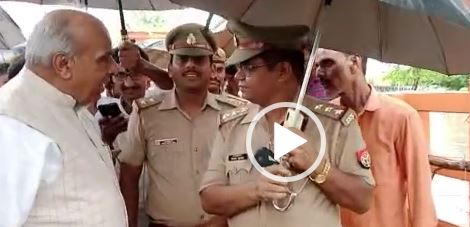 जूता न भीगे इसलिए ट्रैक्टर पर बैठे रहे एसएचओ सांसद ने जमकर लगाई फटकार।