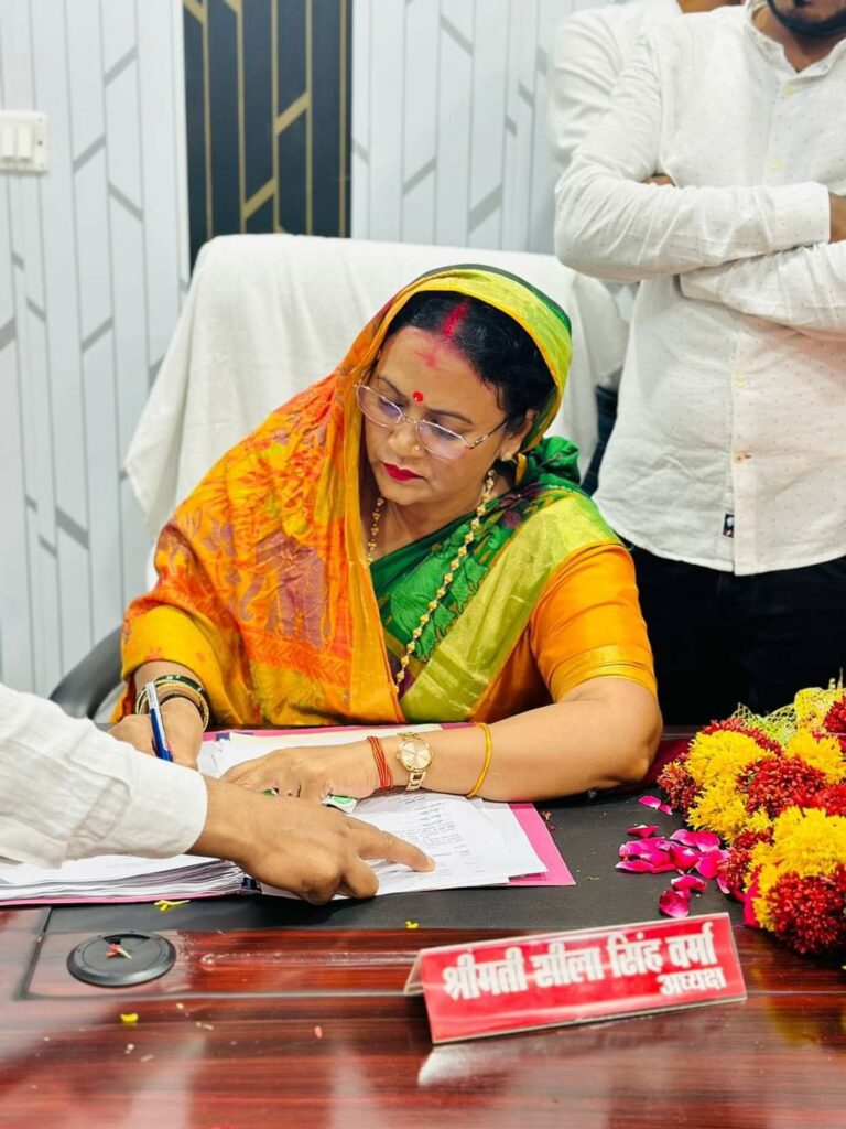 पूर्व मंत्री संग्राम सिंह वर्मा की अनुज वधू और सुरेंद्र सिंह वर्मा की पत्नी शीला सिंह वर्मा अब नगर के विकास और सुनियोजित नागरिक सुविधाओं को सुरक्षित करने वाले सबसे प्रमुख सिंहासन पर विराजमान हो गई है।
