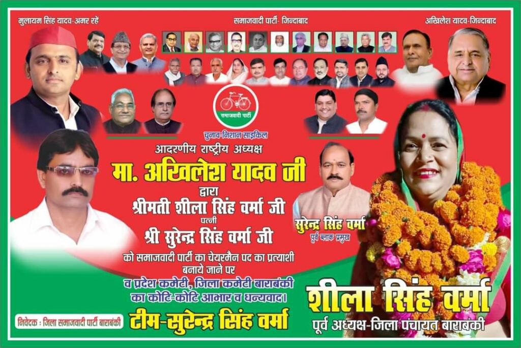 बाराबंकी जिला मुख्यालय में नगर पालिका चेयरमैन के प्रतिष्ठित पद के लिए समाजवादी पार्टी हाईकमान ने पूर्व जिला पंचायत अध्यक्ष शीला सिंह वर्मा को अपना प्रत्याशी घोषित करके तमाम चर्चाओं और अटकलों पर विराम लगा दिया है । गौरतलब है कि बाराबंकी जिला मुख्यालय की नवाबगंज नगर पालिका में अध्यक्ष पद के लिए इस बार समाजवादी पार्टी से कई दिग्गज चुनावी मैदान में थे.. पिछले 10 वर्षों से नवाबगंज नगरपालिका पर भारतीय जनता पार्टी के रंजीत बहादुर श्रीवास्तव के परिवार का कब्जा है।