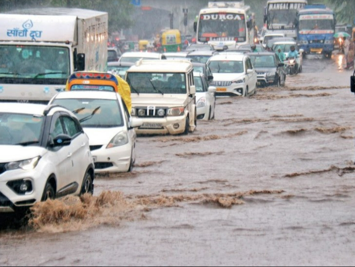 बारिश से गुजरात में सड़कें डूबीं, 6 जिलों में रेड अलर्ट-